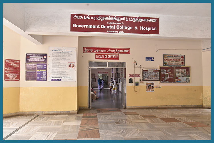 With an history of being one of the oldest dental colleges in the Tamil Nadu state, this college was started in the year 1980 by Dr. Rajah Sir Muthiah Chettiar in the name of Rajah Muthiah Dental College and Hospital as part of Rajah Muthiah Institute of Health Sciences (RMIHS) under Annamalai University with the vision of serving the people of surrounding villages. The Annamalai University was later handed over to the Tamil Nadu Government. The Dental college came under the Department of Health and Famil Welfare in the year 2021 and is now called the Government dental college and hospital, Cuddalore dist., The students are admitted through a selection process by the Directorate of Medical Education, Government of Tamil Nadu. The institution is now affiliated toThe Tamil Nadu Dr. MGR Medical University, Guindy, Chennai.