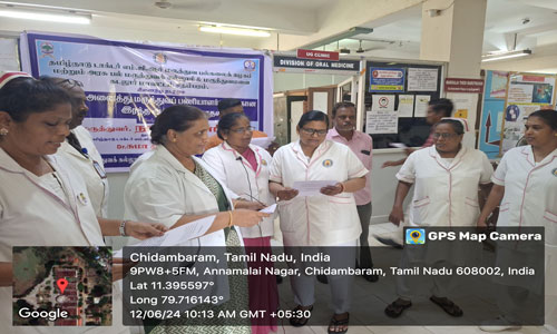 The non-teaching staff of GDC Cuddalore taking an oath on Antihypertensive Day on 12/06/2024.