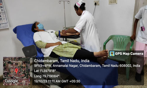 A blood donation camp organized by the Department of Oral Medicine on 19/10/2023.